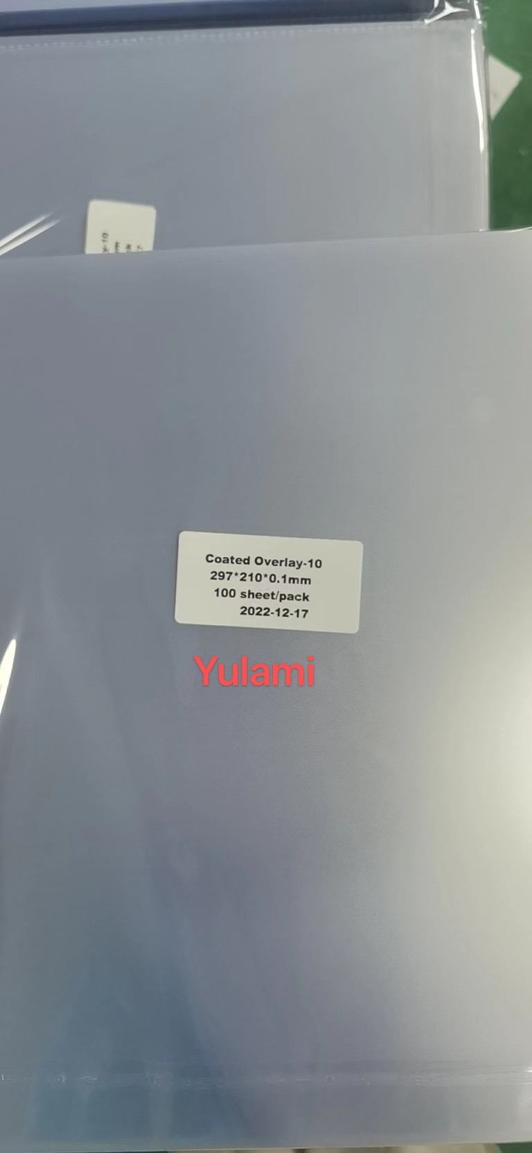 Fusing sheet set 100 pcs(2x50) inkjet printing sheet with 100 pcs coated overlay film matching together packing in one color box.