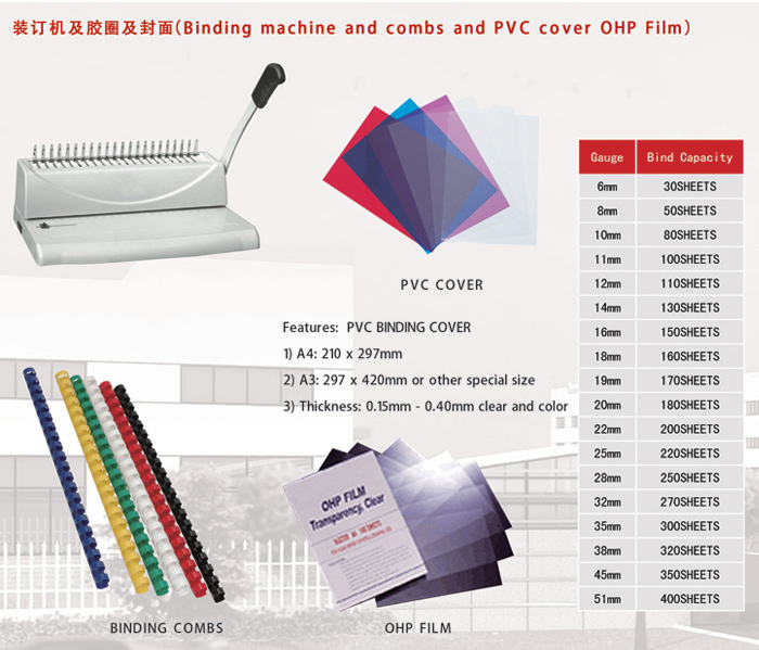 Products>binding systems>PVC Binding COVER & COMBS & machine
